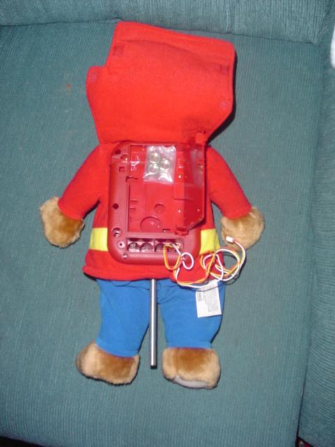I have 13 pictures, below. I understand this model to have only one servo to control all facial features. I've gained access to the main circuit board, but not the head assembly yet. By the way, there is no speaker in this display model. It also lacks the cassette playback mechanism, making it apparently dependent on an external demo system.